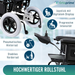 - KOMFORT UND STABILITÄT: Hochwertiger Rollstuhl mit 33 cm großen Hinterrädern und 19 cm vorderen Vollgummirädern, die für eine stabile und sanfte Fahrt sorgen, ideal für alle Arten von Oberflächen.